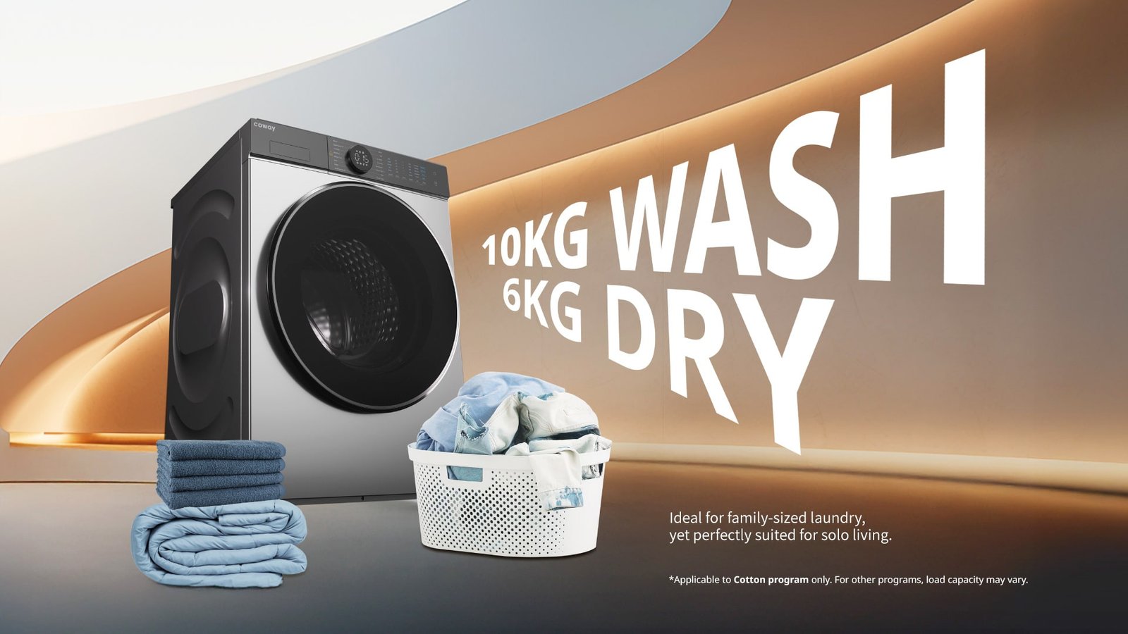 Mesin basuh dan pengering 2-dalam-1 yang direka untuk memudahkan urusan dobi harian dengan ciri pintar dan keupayaan cucian serta pengeringan yang seimbang untuk kegunaan keluarga.
